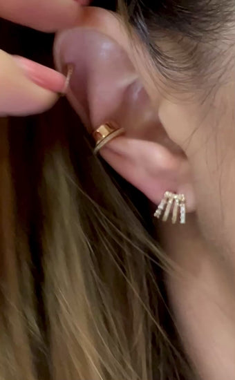 These earrings hug the lobes with four rows of sparkling diamonds in a bold, fan-like silhouette.